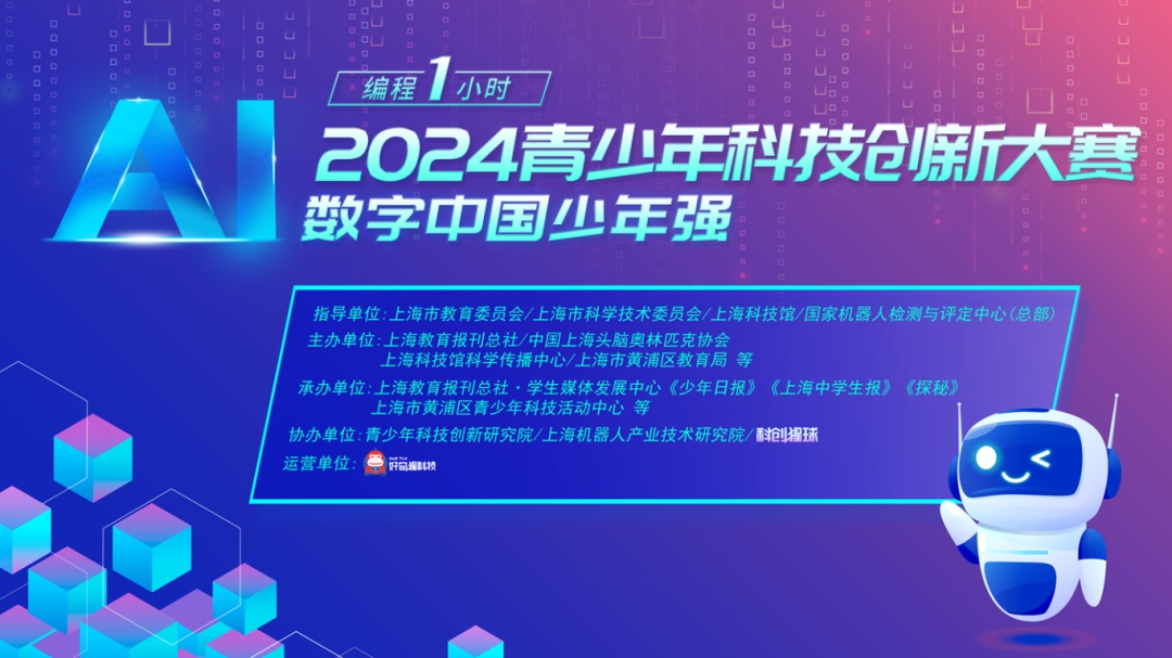 在上海市教育委员会、上海市科学技术委员会、上海科技馆、国家机器人检测与评定中心(总部)等单位的指导下,由上海教育报刊总社、中国上海头脑奥林匹克协会、上海科技馆科学传播中心、上海市黄浦区教育局等单位联合举办的2024“编程1小时”青少年科技创新大赛圆满落幕!