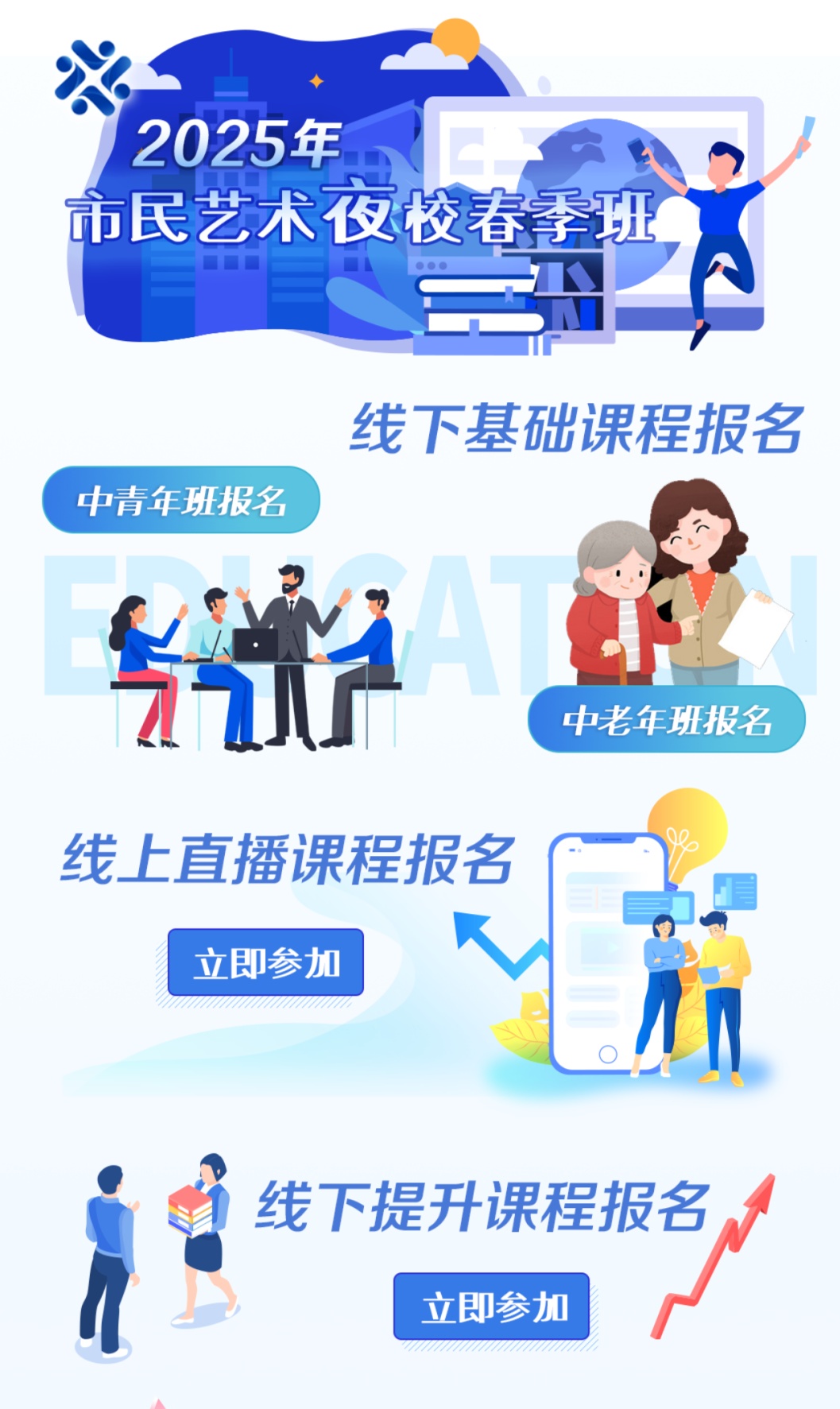 2025年市民艺术夜校春季班从3月10日10:00开启招生。还等什么,快来看看怎么报名吧↓