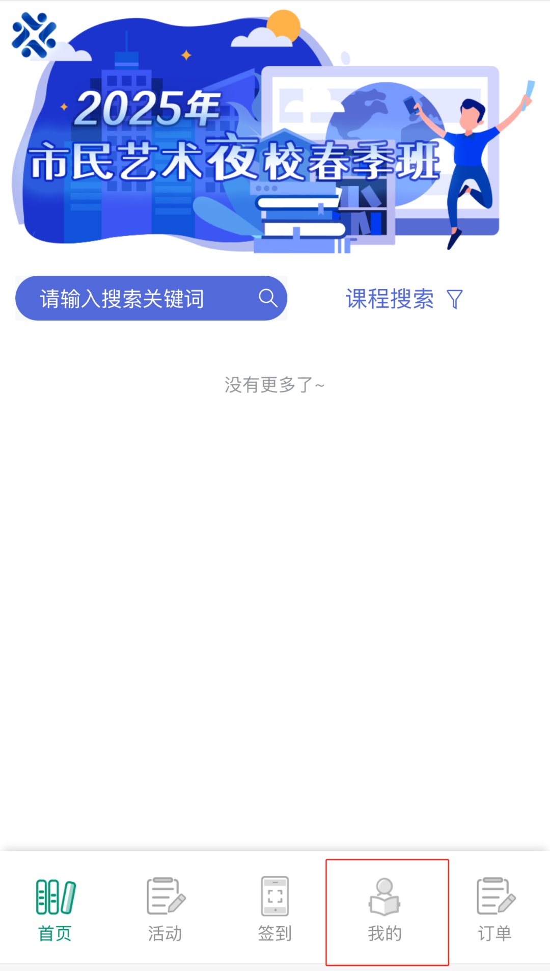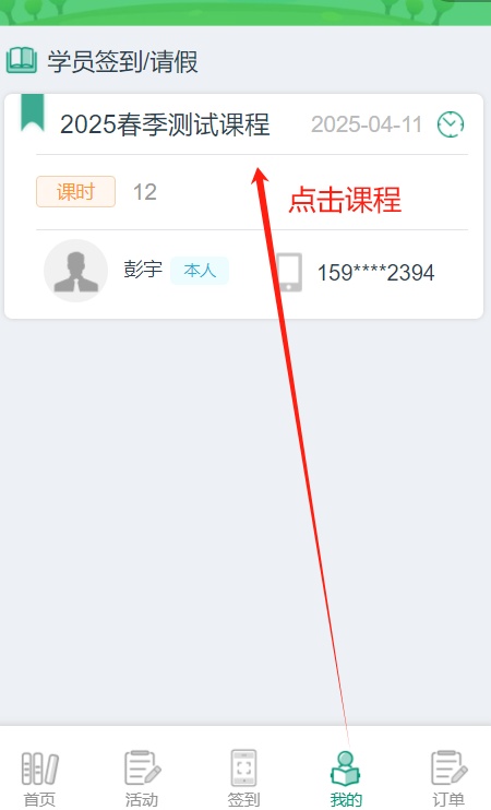 操作方式:点击菜单栏“市民夜校”,点击“我的”→选择“学员签到/请假”下的课程,找到需要“签到/请假”的课时。