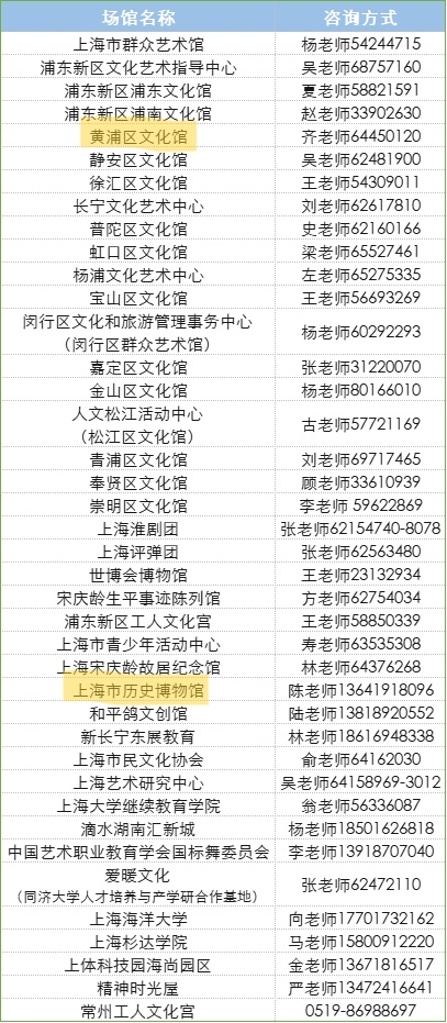 上海市群众艺术馆总校课程