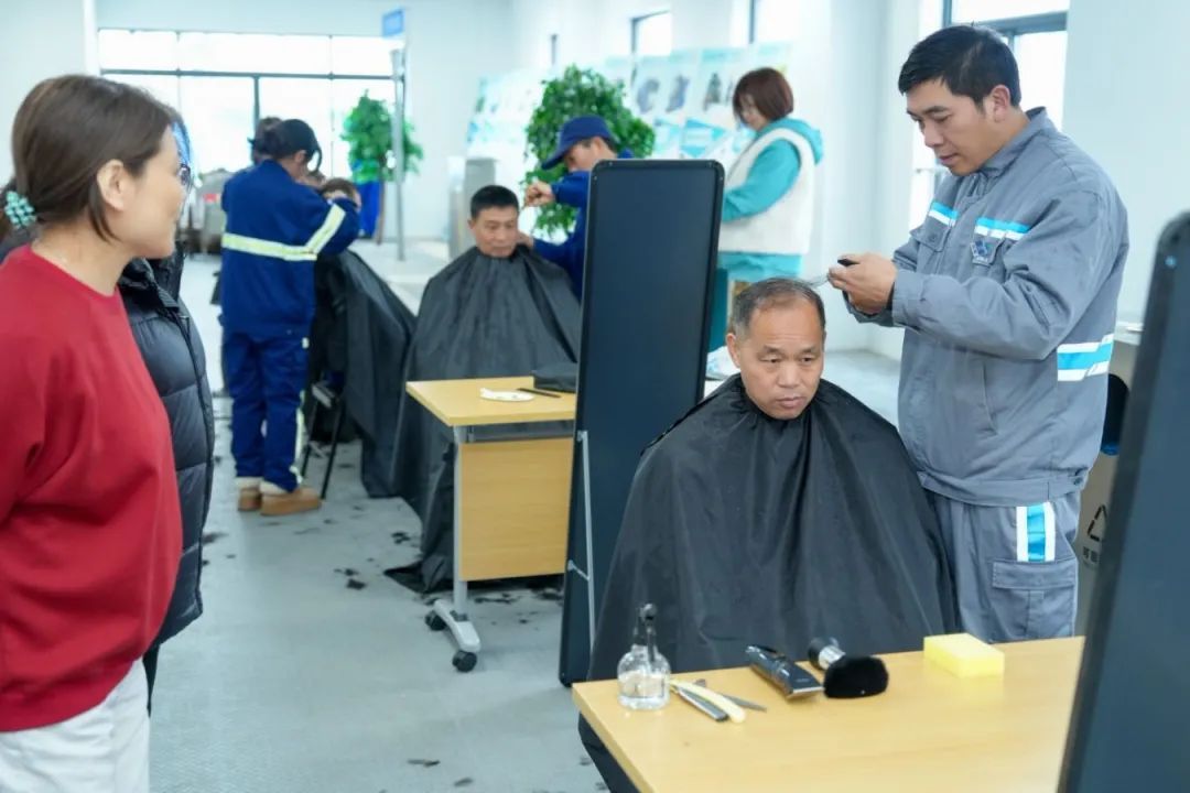 新时代的雷锋精神,既需要“赠人玫瑰”的热忱,更呼唤“细水长流”的匠心。活动现场,随着“职工之家理发室”正式揭牌成立,这个由职工志愿组建的理发队后续将提供免费理发服务。 在现场的理发区,来自静环作业三部的清道职工孙文侠的推剪声几乎没停过。她还有个隐藏身份——职业理发师。 “为大家服务我心里也开心!我已经连续九年每个月给社区老人免费理发了。”