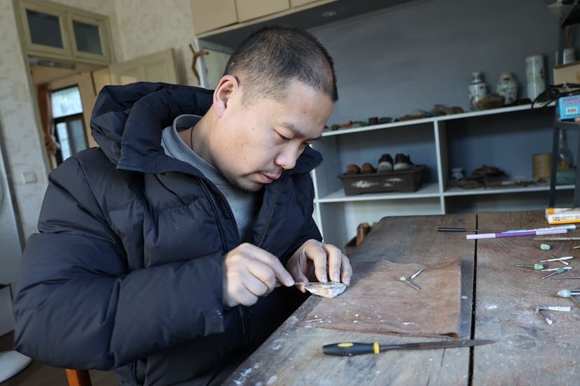 不到40岁的年纪,又没有玉石雕刻方面的系统学习,怎么会从事起这份传统技艺?在与俞福亮的交谈中,他道出其中的机缘巧合。