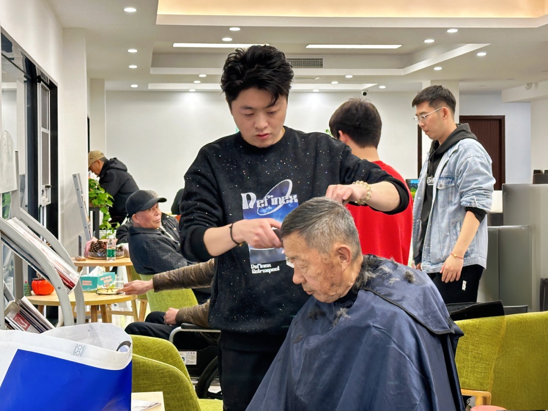活动中,来自社区共建单位的5名理发师同时为居民服务。许阿姨和老伴一起来到现场,她开心地说:“我老伴腿脚不便,我年纪也大了,在家门口就能理发,既方便又暖心。这些小年轻理发师很热情,手艺也很棒。”