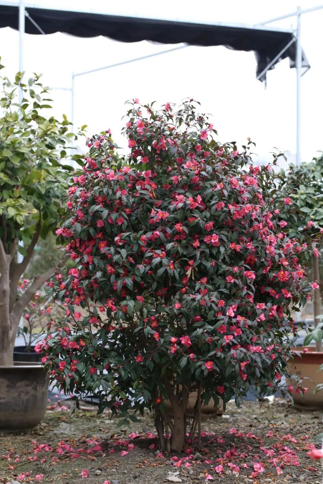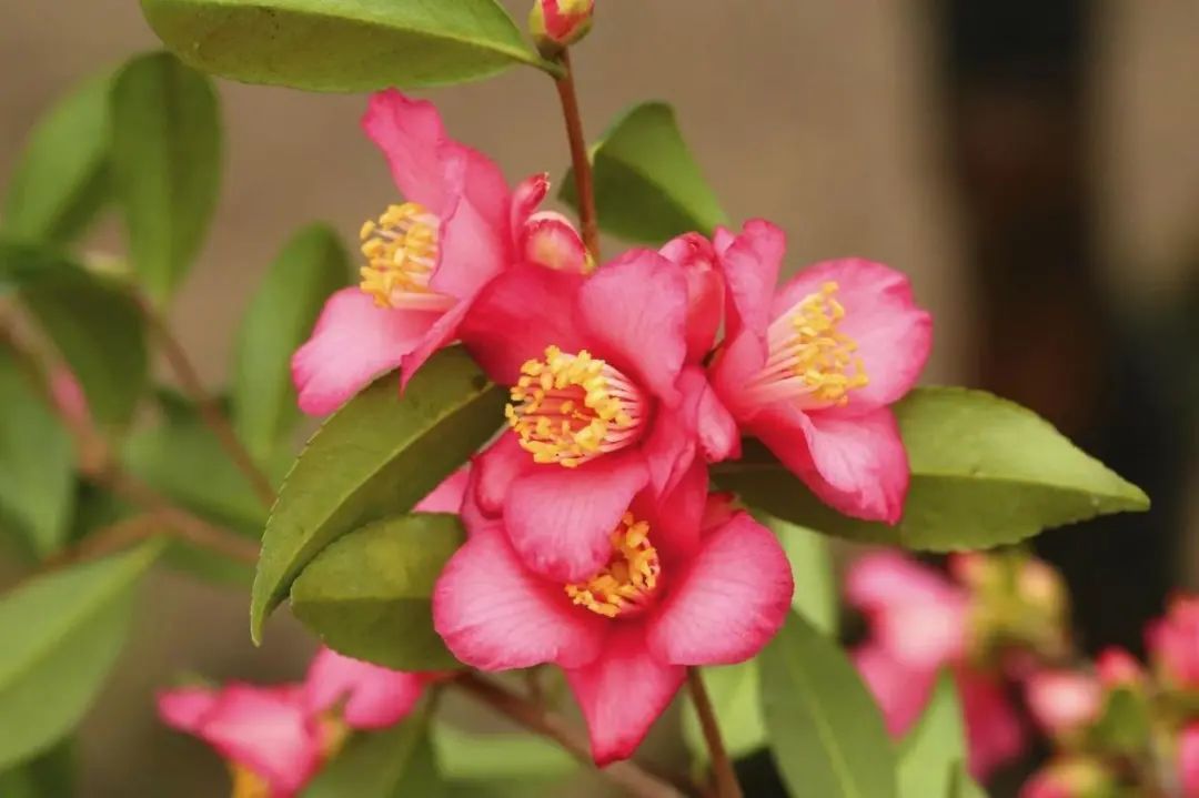 山茶,在大家的印象中,它的花朵应该是又大又艳。但你有见过反其道而行之,花朵还没有掌心大,但一根枝条就能开出一串花,以花量取胜的山茶吗?在上海的绿化带中,你就能见到这些与众不同的山茶,你可以叫它们束花茶花。