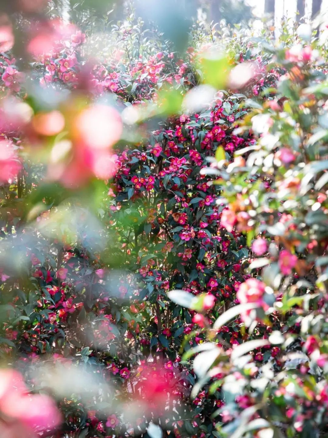 束花茶花另一个特点是耐修剪,十分适合作绿篱,而在上海植物园与泡泡公园等地,还有用束花茶花绿篱搭建而成的迷宫,在繁花盛开时走入其中,与春日来场亲密接触,不失为观赏束花茶花的另一种方法。
