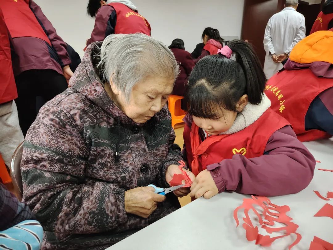 ▲新浜学校党团队齐行动,化作“桑榆暖心使”前往新浜敬老院慰问老爷爷老奶奶,为他们带去活力四射的表演,并合力完成了一副副精美的剪纸作品,传递敬老爱老之情。