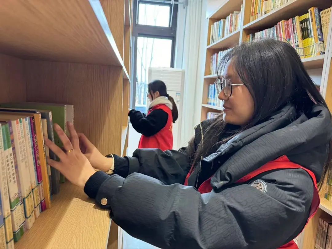 ▲上戏松江附校组织党团员教师志愿者开展“书香润校园”志愿服务活动。教师志愿者们分组协作,通过系统化图书整理于规范化读物审查,为全体师生营造安全优质的阅读环境。