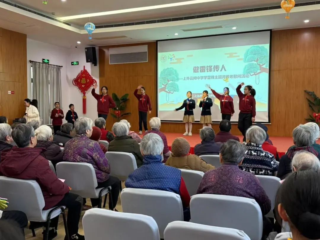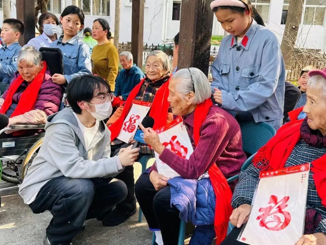 ▲上外云间中学初中部学生走进松江区福利院,听老人讲述往昔故事,握着老人的手聊家常,还献上精心准备的文艺节目,用真诚的陪伴和青春的活力为老人们送去温暖与欢乐。