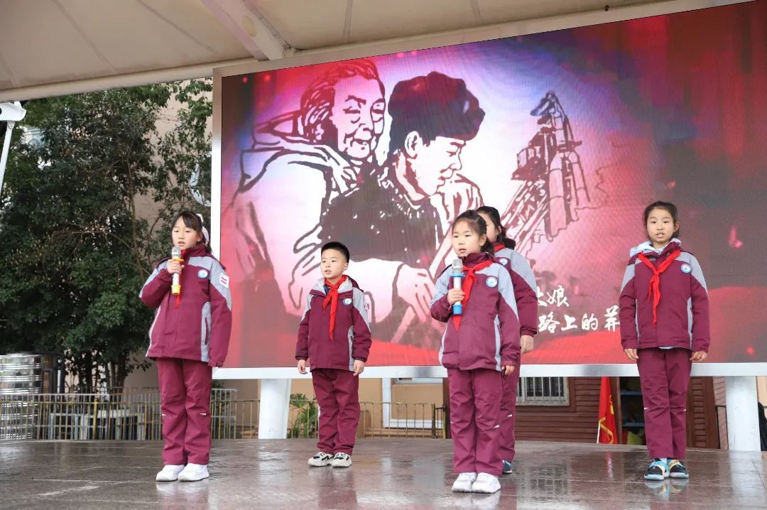 ▲九亭二小“学雷锋”主题集会上队员们深情朗诵,共同追寻雷锋叔叔的足迹。