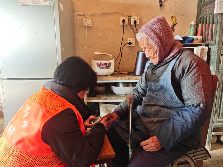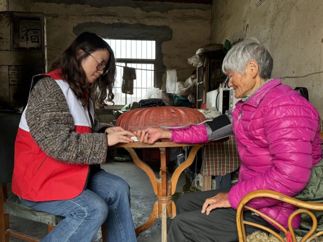 志愿者深入农村一线,为老年居民提供血压、血氧测量,眼科检查等义诊服务,并就饮食、睡眠等方面提出建议,通俗易懂地普及健康知识,为他们的身体健康保驾护航。