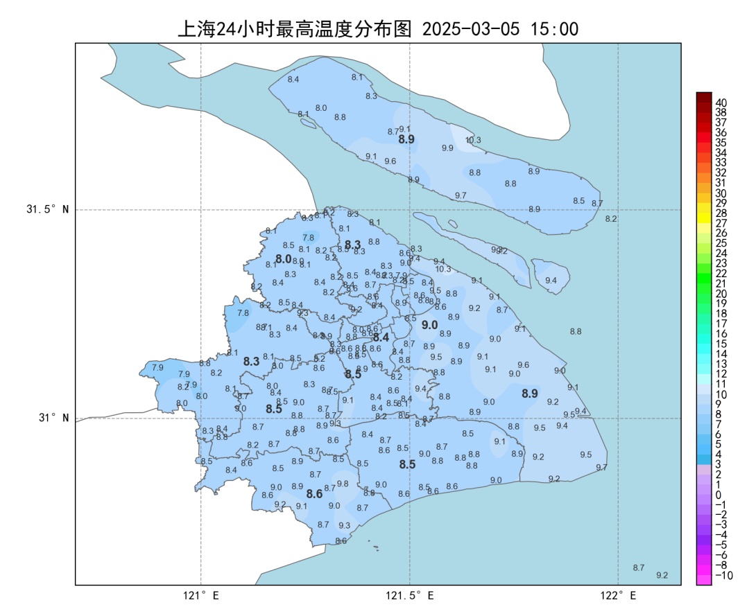 昨夜今晨本市大部出现弱的降水。今天白天阴到多云为主,降水微弱,影响有限。早间全市最低气温在4~7℃之间。白天最高气温和昨日相仿,普遍在8℃上下,徐家汇站8.4℃。加上北到西北风风力较大,今天的体感偏阴冷。