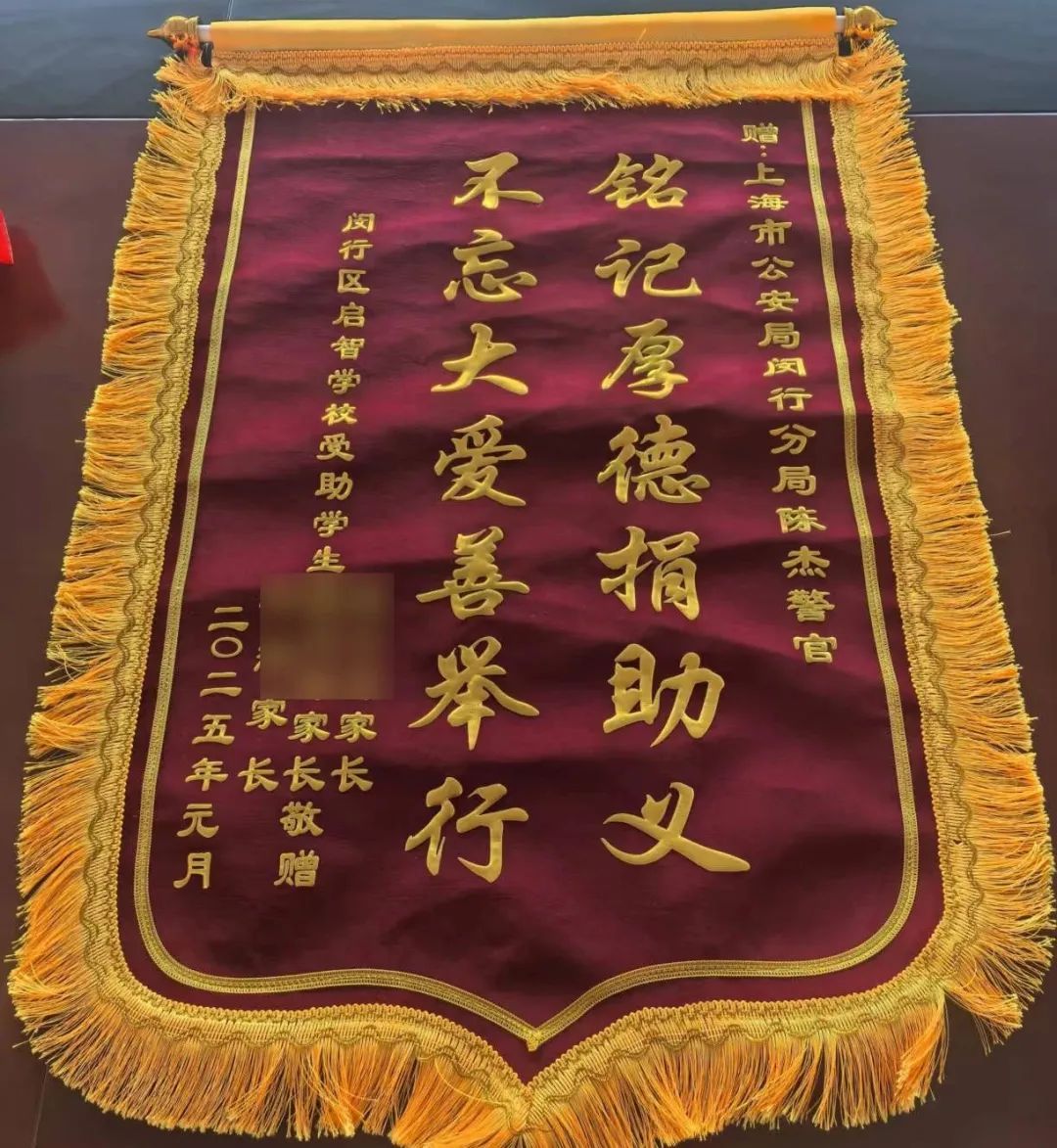 民警陈杰公益助学收到的锦旗
