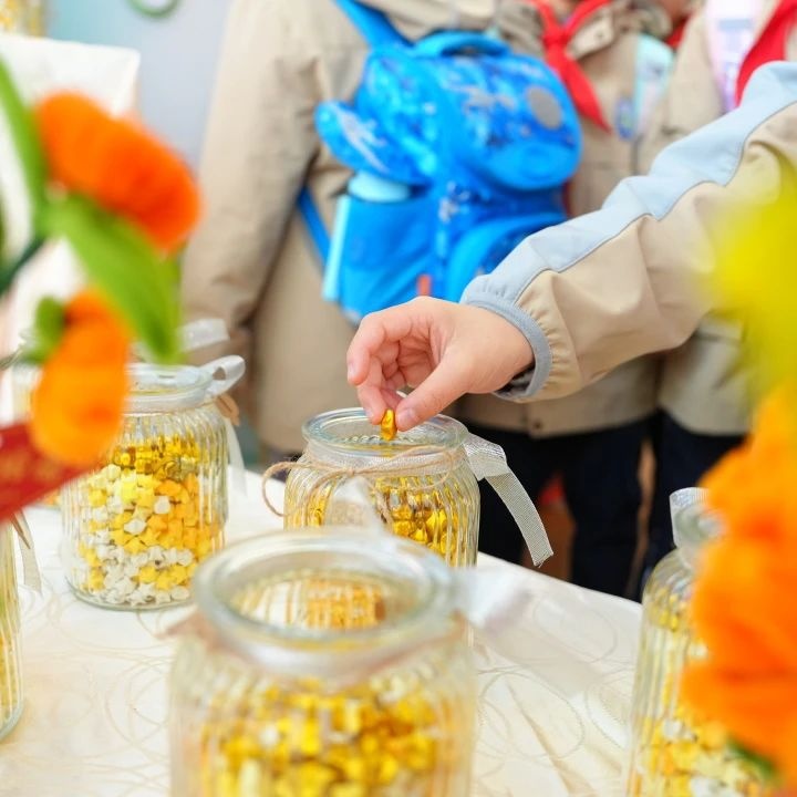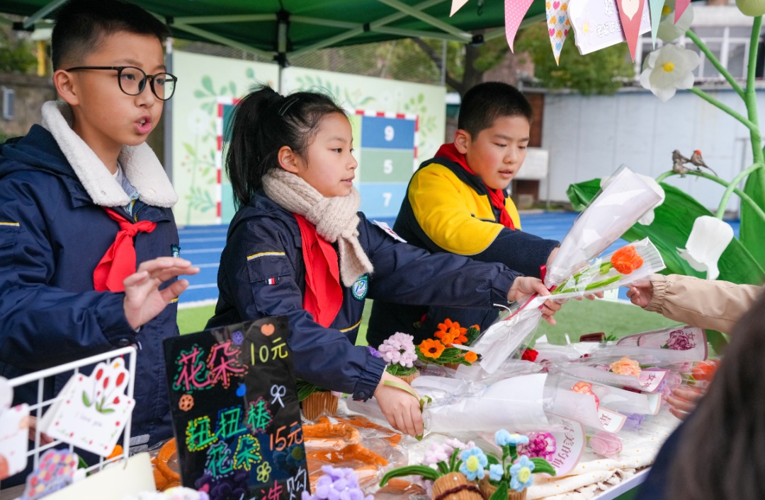 在这股爱心涌动的热潮中,新普陀小学东校梅川、中江校区操场上的同学们异常忙碌。一二年级的小朋友们捐出自己心爱的玩具、书籍。中江校区五年级的队员们更是巧妙地将劳动教育融入课程实践,充分发挥自身创意,精心制作出京剧脸谱拨浪鼓、掐丝珐琅、螺钿工艺、非遗剪纸、大白兔奶糖等令人赞叹的手工艺品。