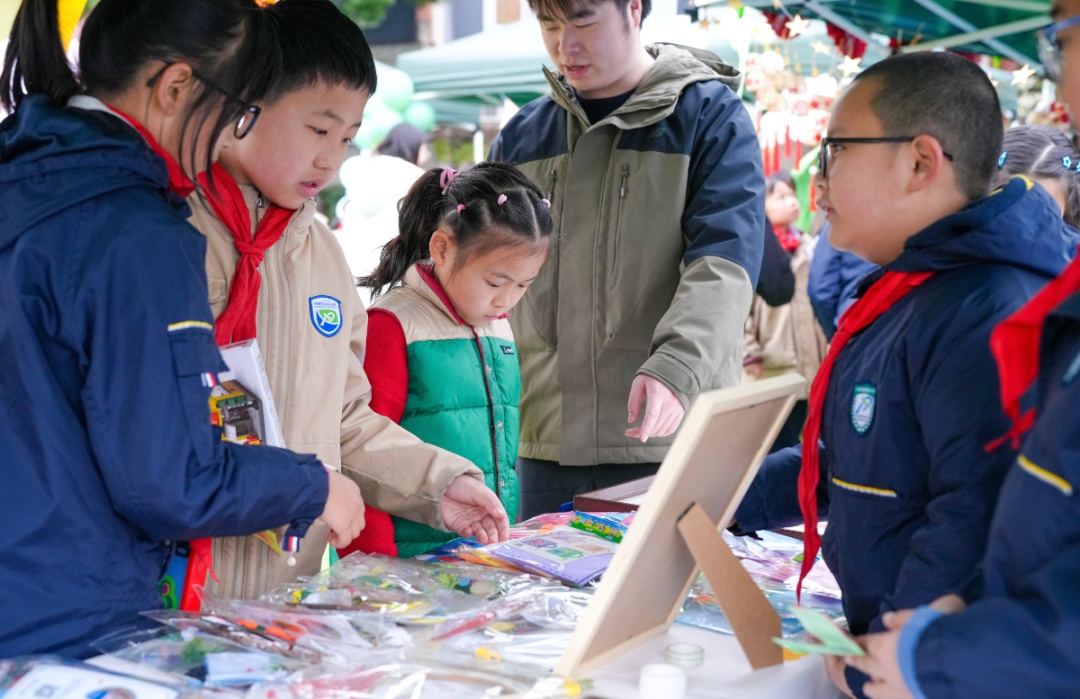 沪太新村第一小学的孩子们来到中国福利会少年宫,开展学雷锋主题活动,聆听工程师的技术攻坚经历。上海师范大学附属第二实验学校通过技术能手分享、拍摄科普视频、捐赠义卖善款等多元行动,将技能展示、新媒体传播与公益实践相结合,服务社区,关爱特殊教育。普陀区教育学院附属中学的少先队员们在普陀区真如星愿·慈善超市担任“小店长”,体验商品整理员、书籍管理员、会议室管理员、新媒体运营等角色,用实际行动“学雷锋,树新风”。