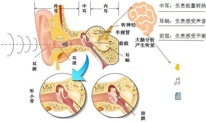 耳朵由外耳、中耳和内耳三个部分组成。外耳包括耳廓和耳道,主要负责收集声波。中耳则包含鼓膜和听骨链,它们将声波转化为机械能。而内耳则包含耳蜗和前庭系统,将声音转化为神经信号传递给大脑,使我们能够感知周围的声音。耳朵内部还有平衡感受器,能够感知身体的倾斜和转动,帮助我们维持身体的平衡和姿势。
