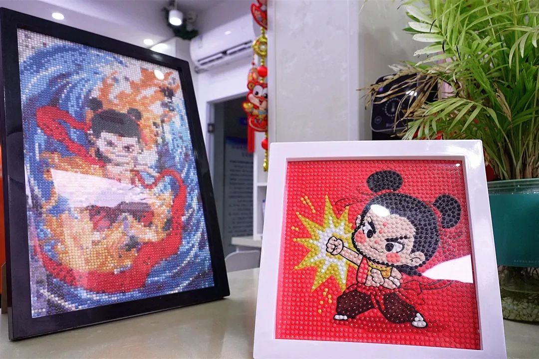 今年春节,不少学员都因为电影《哪吒之魔童闹海》(简称《哪吒2》)爱上了哪吒、敖丙、申公豹等形象。在回到阳光基地参加培训时,多位学员就找到基地负责人表达了“制作一系列以《哪吒2》中人物形象为主角的钻石贴画”的想法。很快,基地就为学员们找来了制作材料和图样。