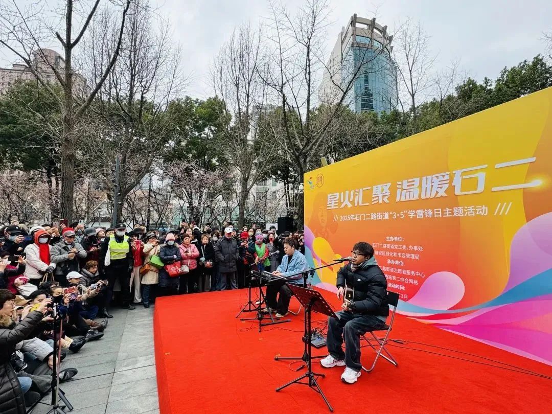 音乐类短视频博主、歌手、2024年“上海街艺最杰出艺人”、石门二路街道“公益合伙人”罗小罗在这里举办了一场别开生面的公益音乐会,为石门二路街道“3·5”学雷锋日活动志愿者们和现场观众们献唱,用美妙的歌声传递志愿精神和公益理念。