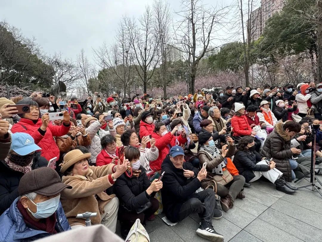 “月半弯,我喜欢,有情有意有你……纷纷扰扰与我无关。”3月5日上午,静安雕塑公园传来阵阵悠扬动听的歌声。