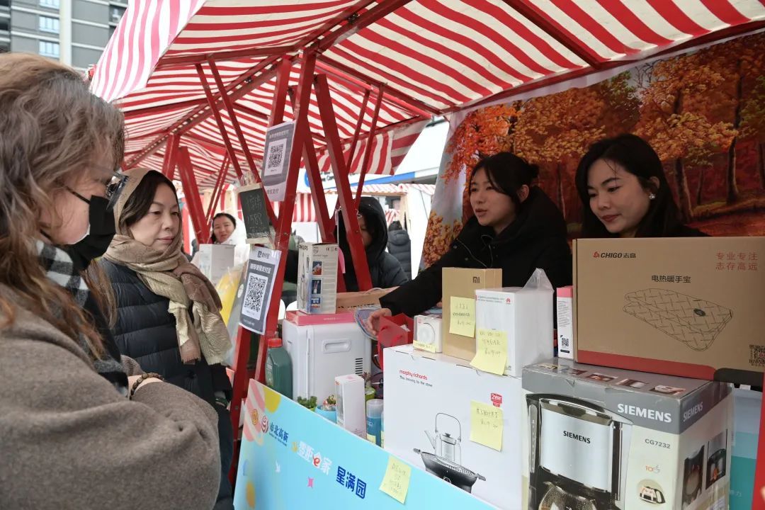 爱心义卖区、公益服务区和互动打卡区三大特色区域如同暖心磁场,在午间休息时间吸引着园区白领、周边居民、新就业群体穿梭其间。