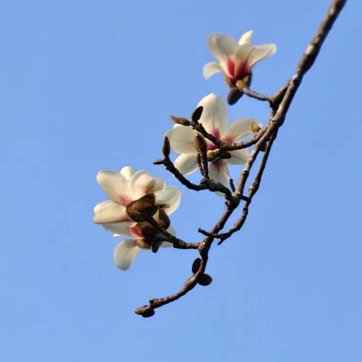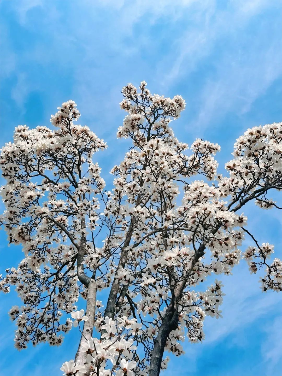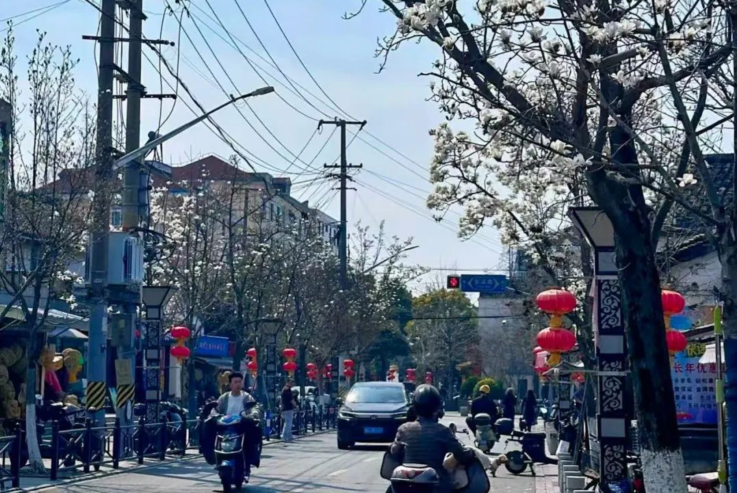 随着这两天气温的回升,不少居民纷纷走出家门,在感受春天气息的同时,大家也惊喜地发现,街上的玉兰花次第盛开,有一棵已满是繁花,在湛蓝天空的映衬下,赋予古镇温柔的春日氛围。