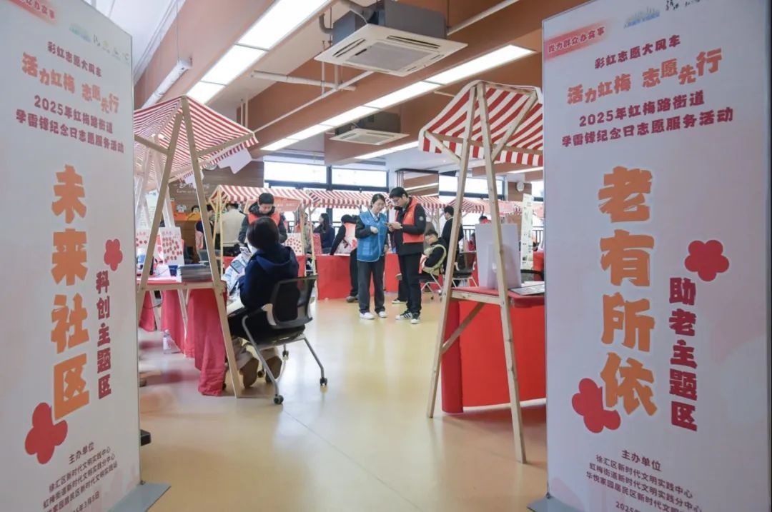 3月5日,徐汇区虹梅街道在上澳塘党群服务中心举办了第四届彩虹志愿大风车——“活力虹梅 志愿先行”主题市集活动。活动以“活力街区”为线下阵地,聚焦产城融合,深化资源互联,将雷锋精神融入志愿服务,推动新时代精神文明建设。现场不仅有丰富多彩的志愿服务市集,还有趣味互动打卡和好人影像展示,吸引了众多居民参与。