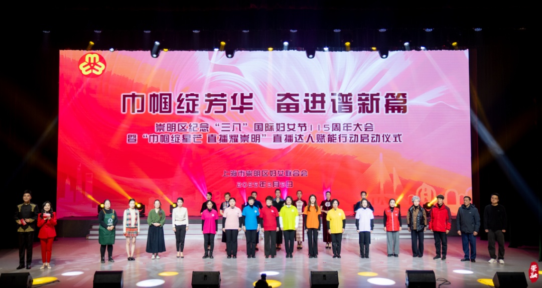 3月5日下午,“巾帼绽芳华 奋进谱新篇”崇明区纪念“三八”国际妇女节115周年大会暨“巾帼绽星芒 直播耀崇明”直播达人赋能行动启动仪式在崇明区风瀛洲剧场举行。区级各群众团体主要负责人,各乡镇党委分管负责人,各委局妇工委、区总女职工委员会主任、各界优秀女性等400余人参加现场活动。