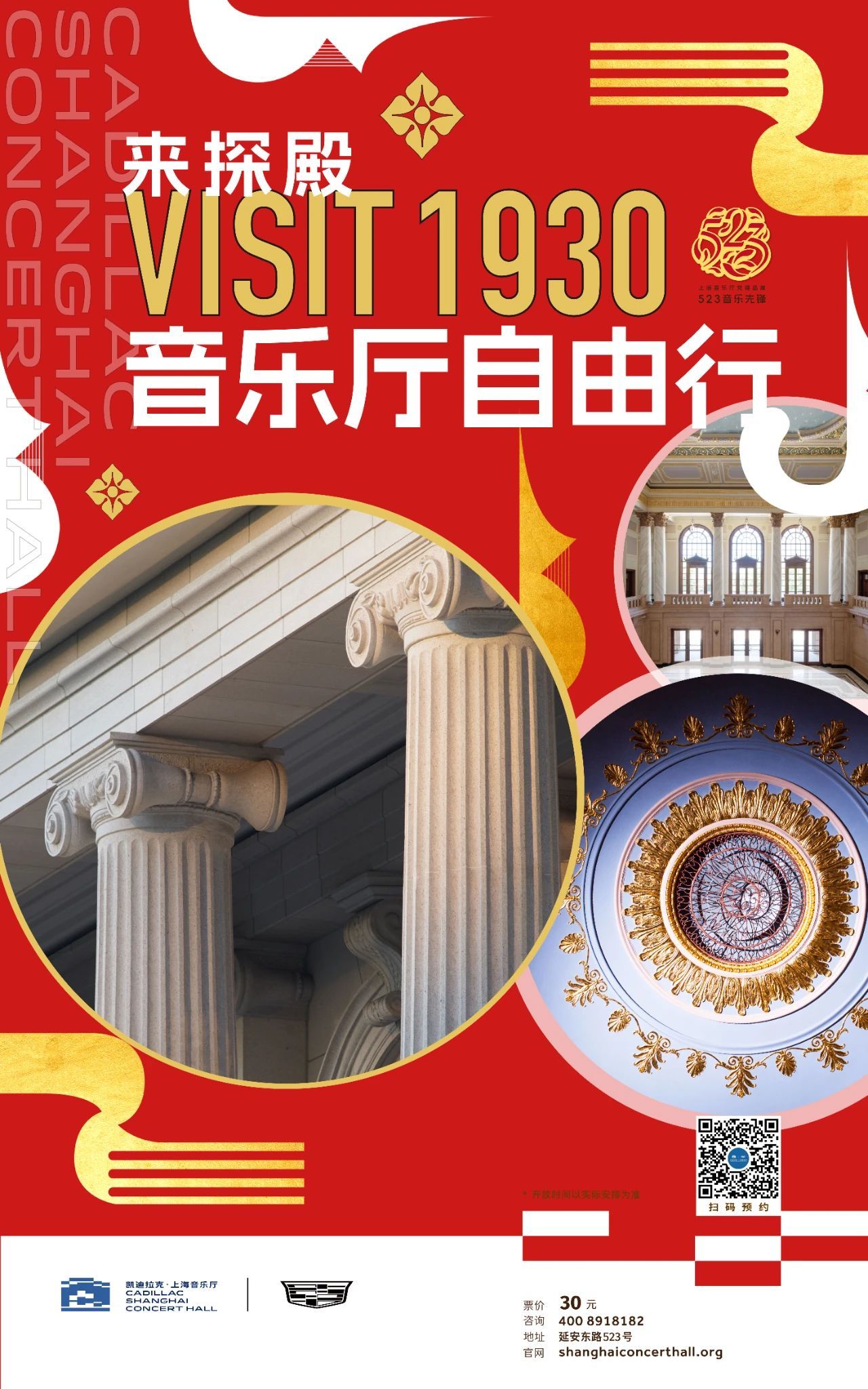 参观区域:凯迪拉克·上海音乐厅1楼北厅、观众厅、东西厅;2楼观众厅、东西厅