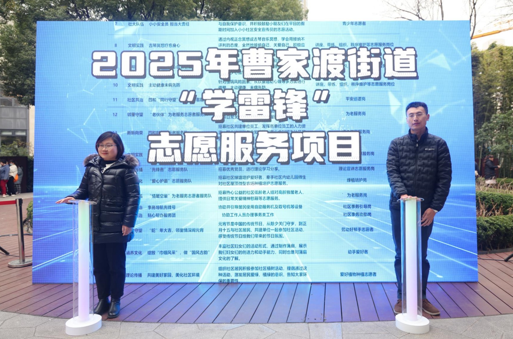 活动中,区委社会工作部和曹家渡街道共同发布了2025年街道“学雷锋”志愿服务项目,涵盖理论传播、邻里守望、文明实践、涵养文化等七个方面。