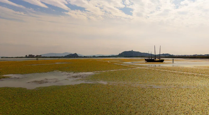 荇菜属浅水性植物,其茎细长柔软,荇叶于湖面上蔓延开来,叶片随水波荡漾,极富韵律之美。从食用价值来说,荇菜的嫩茎可以焯熟后凉拌、炒食,或者和面蒸食,也可以晒干菜。荇菜的药用历史也很悠久,唐代《新修本草》记载,荇菜“味甘,冷,无毒,主消渴,去热淋,利小便。”主要用于治疗感冒发热无汗、麻疹透发不畅等症状。