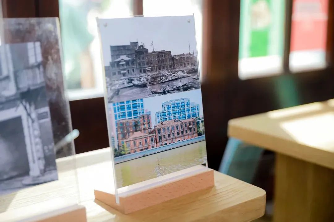 1904年从上海寄往葡萄牙里斯本的明信片上,印有张园曾经的“上海第一高楼”安垲第的影像,是静安海派风情的见证;1930年代的一张黑白照片上,苏州河畔仓库建筑林立,是静安近代民族工商业发展的写照;一旁的古董立体看片器里,淞沪抗战时期的一枚商务印书馆的影像,静静诉说着静安的红色记忆……