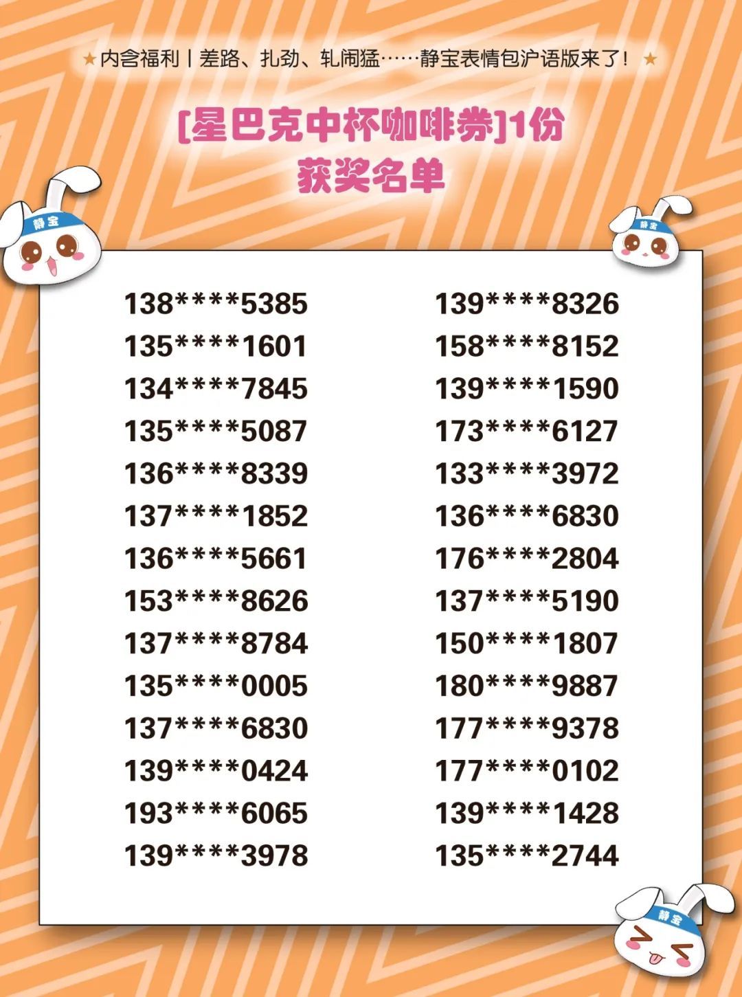 此前静宝推送的《内含福利丨差路、扎劲、轧闹猛……静宝表情包沪语版来了!》中奖名单已经出炉!详见↓