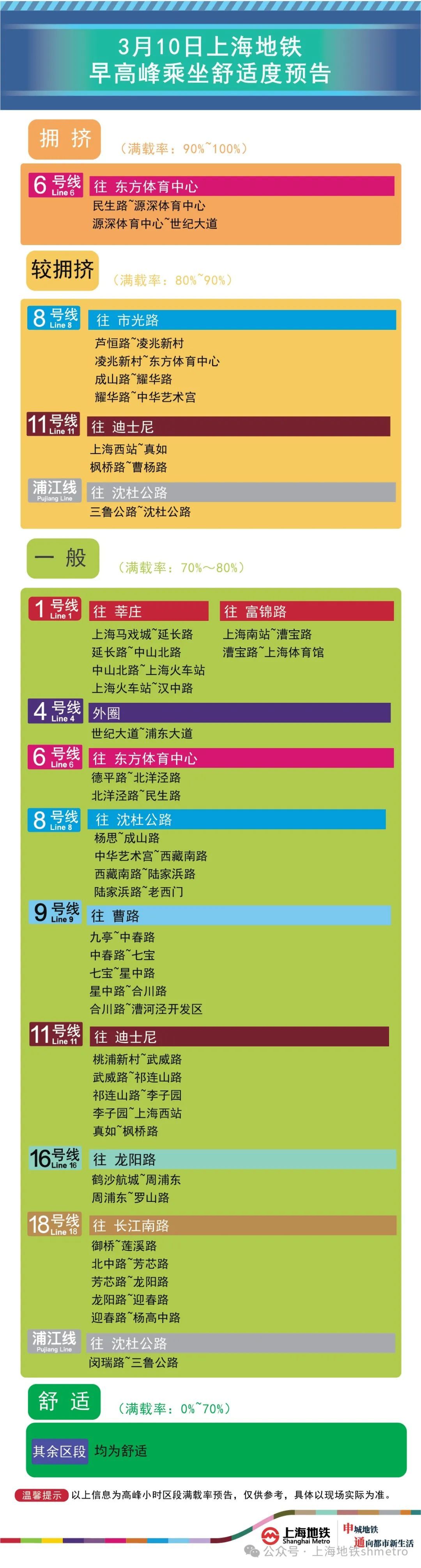为提升上海地铁早高峰期间出行服务水平,提升乘客乘坐体验,上海地铁向乘客提供乘坐舒适度预告,方便乘客提
