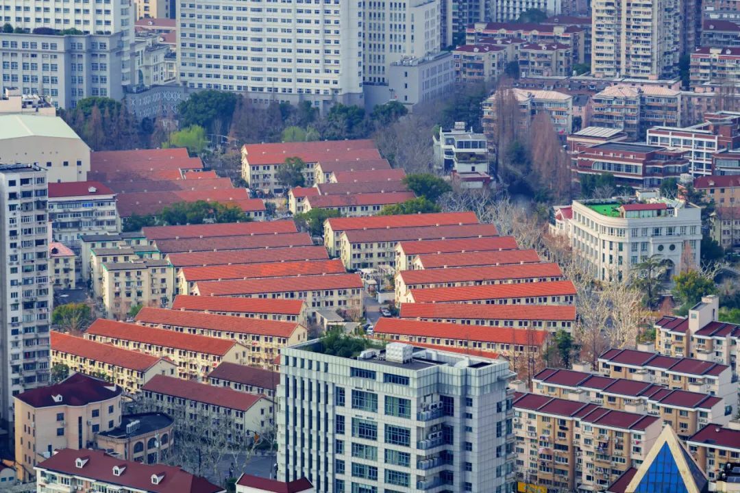 一片红顶斜坡房连绵起伏,这里是新中国第一个工人新村——曹杨新村。这片区域始建于1951年,曾居住过200多位劳动模范和先进工作者,也因此被称为“劳模新村”。
