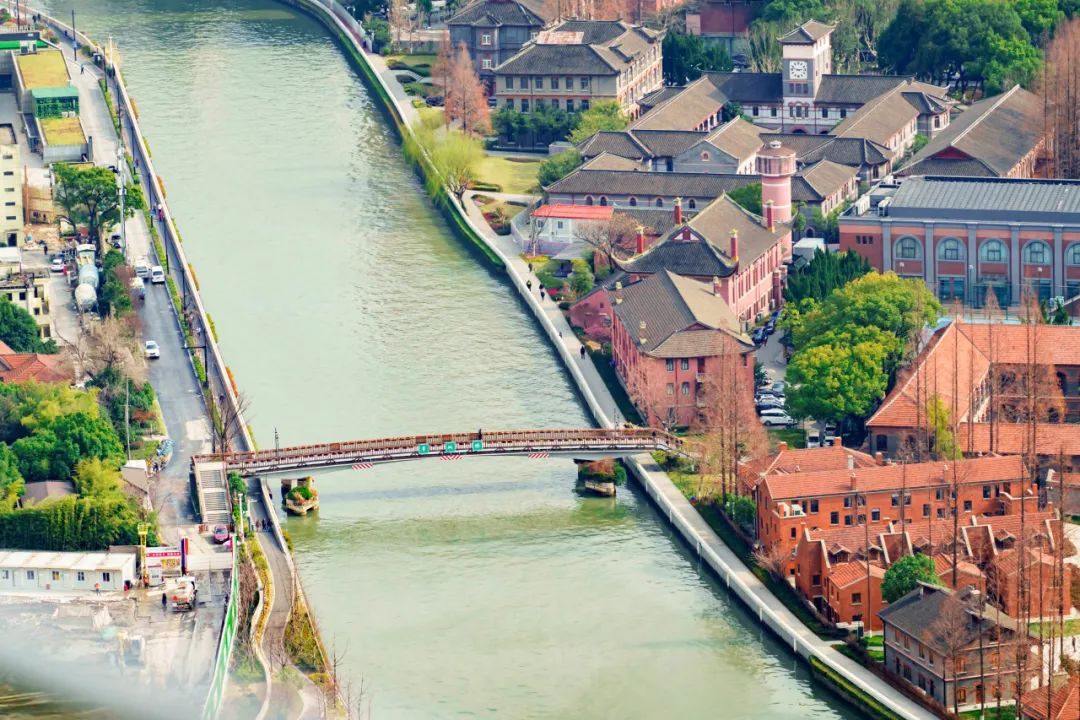 蜿蜒流淌的苏州河映入眼帘,河畔的华东政法大学静静伫立。这里曾是百年前圣约翰大学的旧址,建筑风格中西合璧,尽显独特的文化韵味。