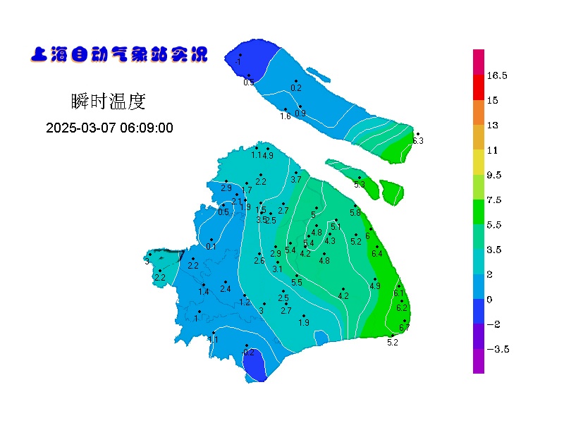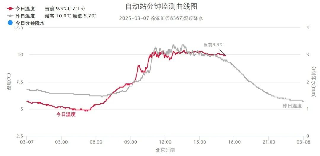 今日阳光开场,但随着云雨区东移,下午天空逐渐变得阴沉,市区徐家汇站最高止步10.4度。白天体感还算舒适,但早晚寒冷,今晨崇明和金山最低气温在冰点以下,厚外套别着急脱。