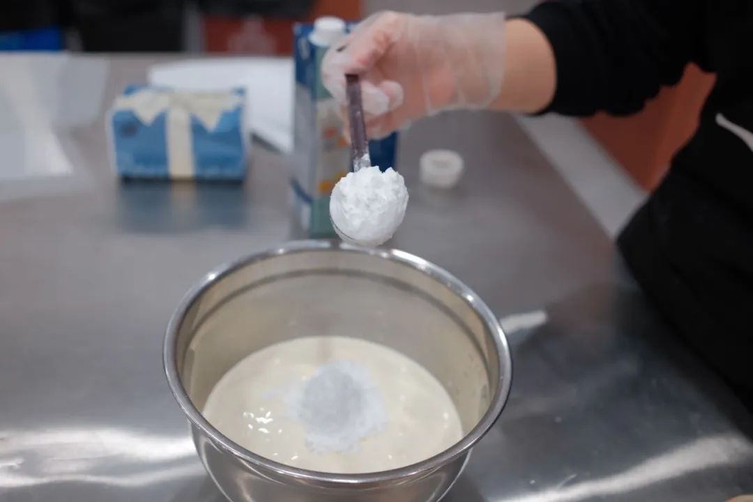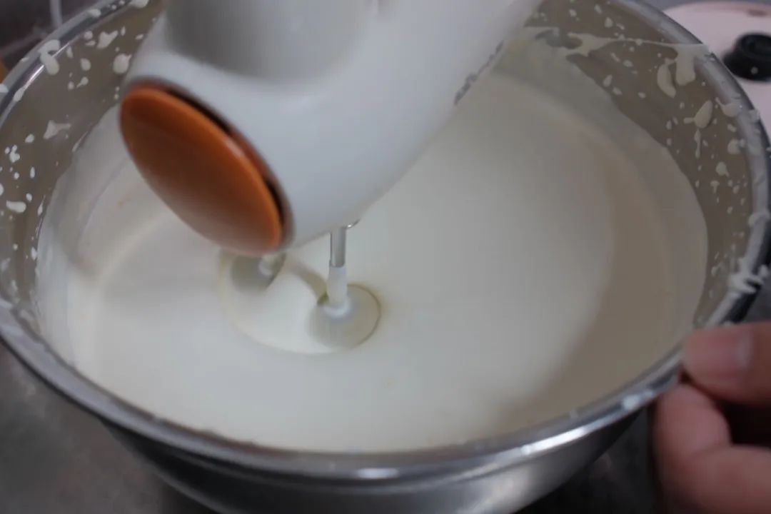 将四寸戚风蛋糕烤好,冷却后切成三片。按照一升奶油、60克糖粉的配比打发奶油。