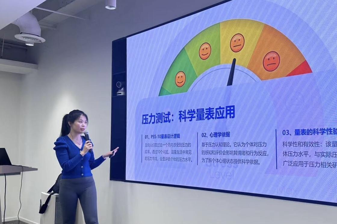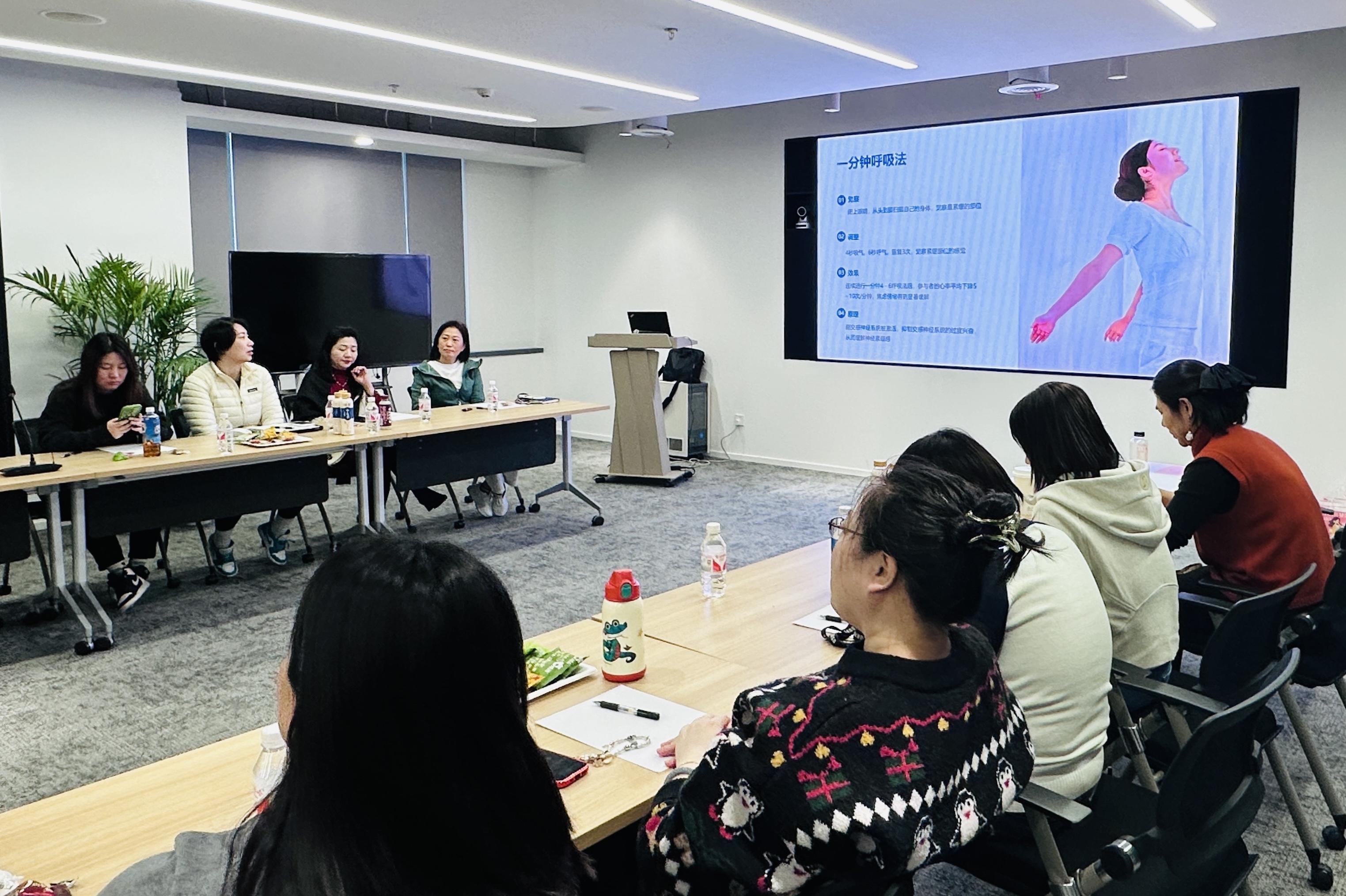 现场,大家共话职场女性的情绪管理与压力调节之道。除此之外,专业人员为企业白领进行压力测评并体验情绪觉察,帮助职场女性们识别自己的情绪状态,学习如何通过注意力调节、呼吸练习、身体感知等方法,有效缓解焦虑、提升情绪稳定性。