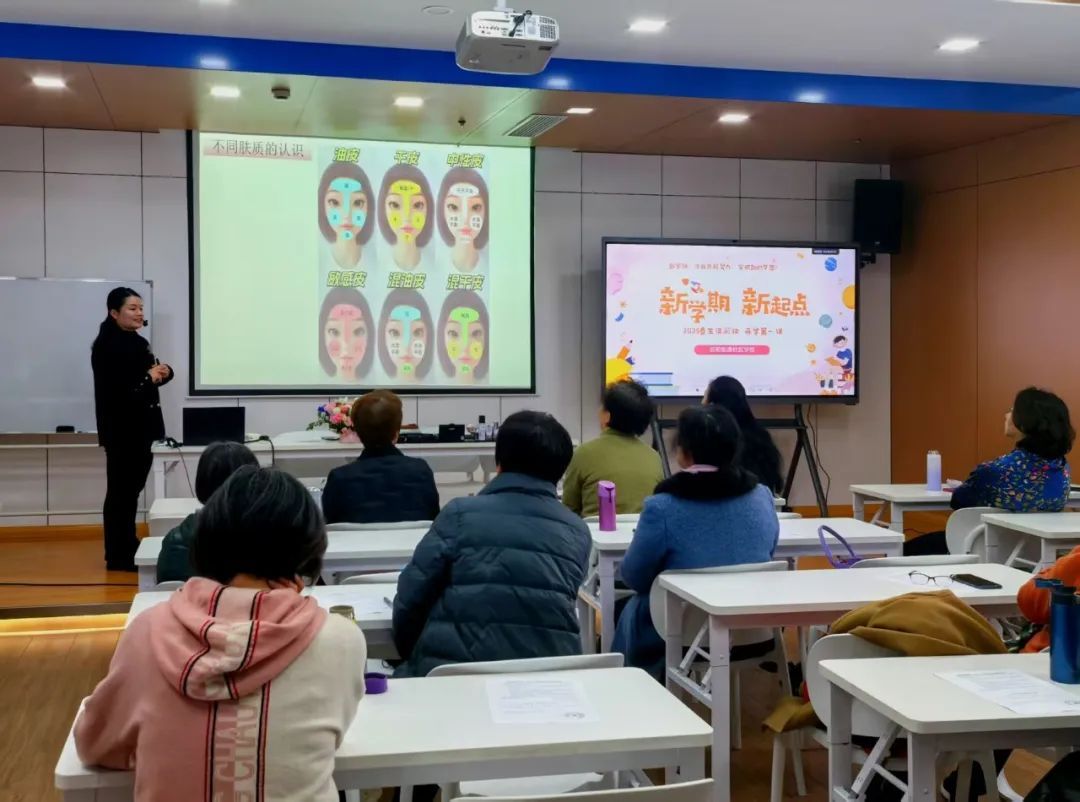 对此,学员薛锦丽的一番话或能折射市民的心态,“永远保持学习的状态,除了感兴趣的课程,全新的知识也要接触的,心态年轻,身心健康,对自己、对家人都有益。”这学期,62岁的薛锦丽还选修了生活彩妆课程。开课第一天,教师陈二影带领大家一起学习皮肤护理相关知识。