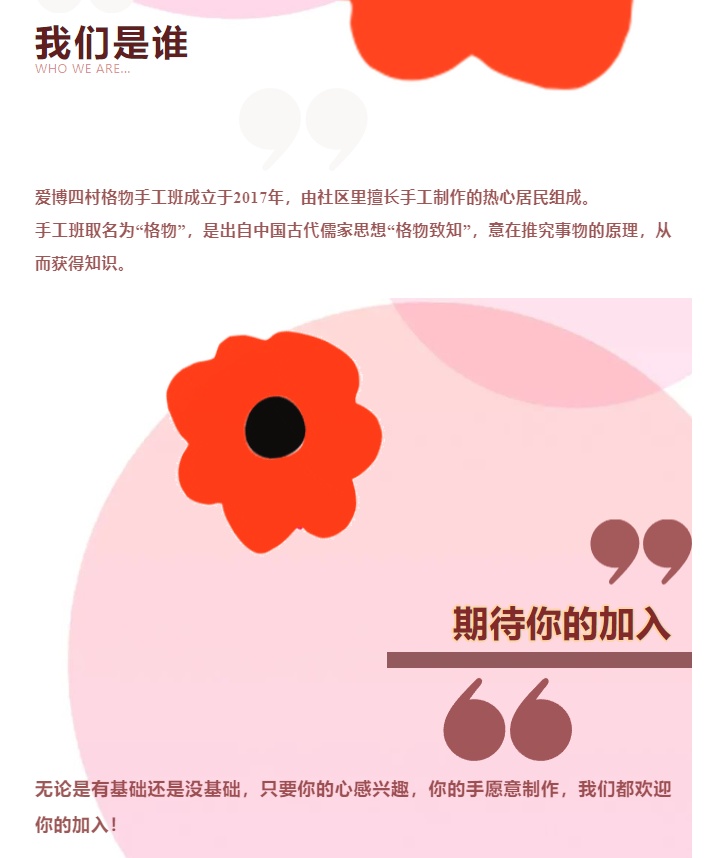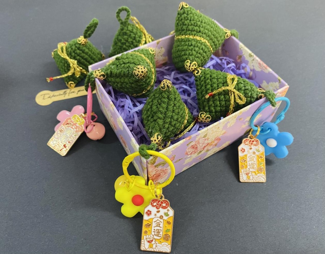 这些精巧手工饰品皆出自爱博四村格物手工班之手。一针一线间,既有《考工记》“天有时、地有气、材有美、工有巧”的匠心传承,也跃动着年轻Z世代“万物皆可织”的创意灵感。这个成立于2017年的手工社,曾面临传统手工艺普遍性困境:学员老龄化问题日益凸显,编织班渐渐成了“银发课堂”,技艺传承出现断层危机。