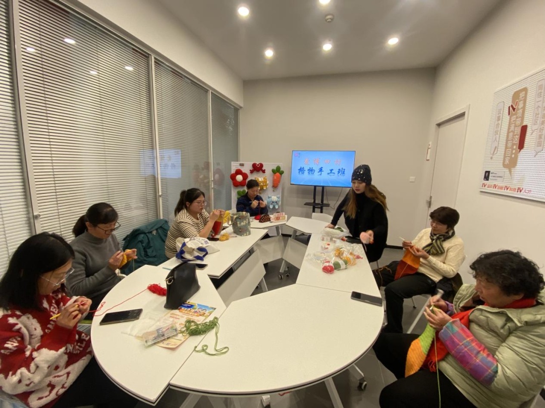 一位台胞宝妈坦言:“之前从未接触过钩针编织,没想过毛线球能变身艺术品,这种‘指尖魔法’让人着迷。”其他宝妈也纷纷诉说心声:在996与“鸡娃”育儿的夹缝中,钩针成了纾解压力的情绪树洞,更是给孩子传承经典文化的生动启蒙。新老学员围坐在一起,银发与青丝在毛线穿梭间交相辉映。钩针起落中,老人教长针技法,宝妈创潮流配色。代际碰撞间,格物社也逐渐实现“逆生长”。据爱博四村居民区党支部书记朱莉琼介绍,目前格物社成员从6人扩容至13人,平均年龄直降20%。 “年轻血液带来的不仅是创意上的革新,更是社区共建共享的活力。”朱莉琼说道。传统不是守住炉灰,而是传递火焰。在爱博四村,这群“织造新势力”的作品始于党群服务站,终点将不局限于党群服务站,未来将进一步探索装点社区,让更多公共空间绽放“毛线美学”。