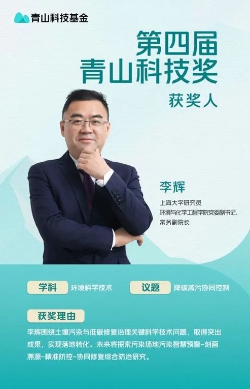 近日,第四届“青山科技奖”获奖名单正式公布,该奖项在全国范围内仅授予十位青年科学家。上海大学环境与化学工程学院党委副书记、常务副院长李辉研究员成功入选。