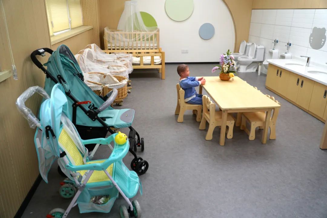 值得一提的是,这里还设有婴幼儿实训教室,专门针对0-3岁婴幼儿的照护和托育需求进行实训。“我们有13间教室,其中比较有特色、具有代表性的是我们的托育实训中心,是为了应对上海市0-3岁托育一体化要求而建设的。”教育学院院长徐娟表示,“这间教室主要方便学生在校期间进入育婴师、婴幼儿照护以及托班的模拟环境,满足学生更加细分的教学需求,提高学生的就业竞争力。”