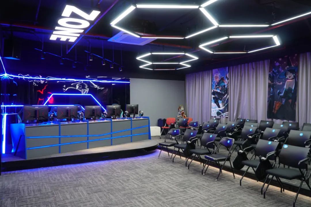随着在线新经济的发展,直播和电竞行业成为当下热门领域。旭华楼建设了1:1复刻的直播间教室,从选品、设备到场景布置,完全模拟真实直播环境。学生可以在这里进行直播实操,掌握从策划到执行的全流程技能。此外,还配置了一流的电竞实训教室,配备了高性能电脑、专业电竞设备,为学生提供沉浸式的电竞实训环境。