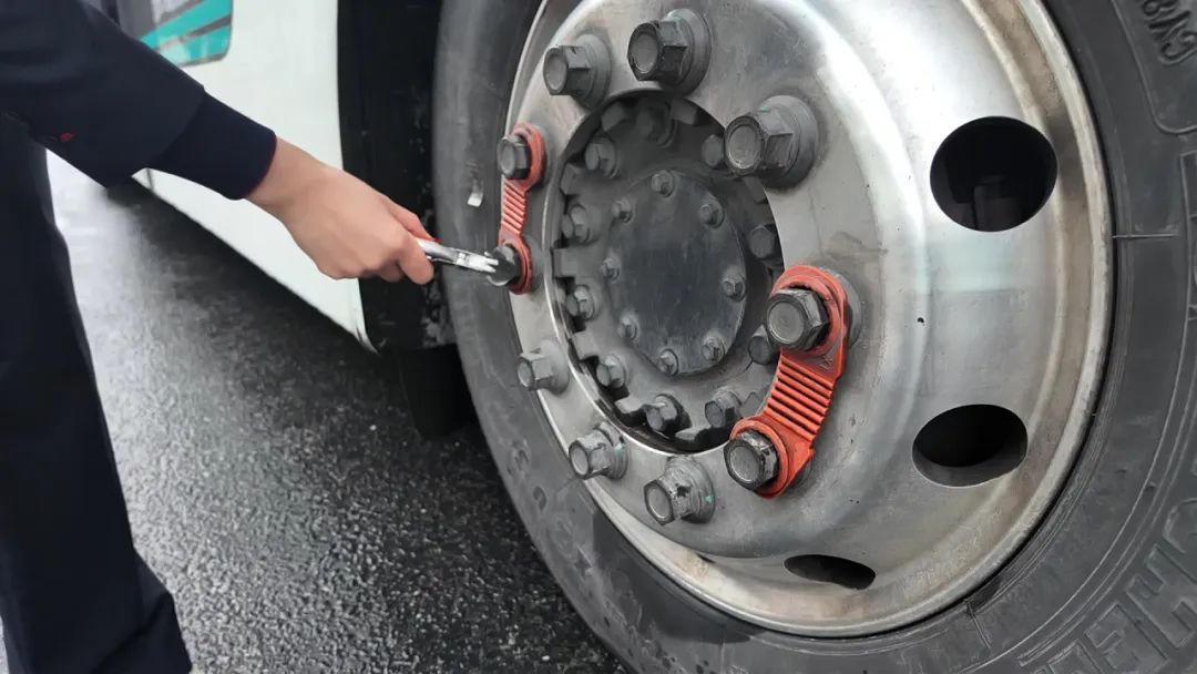 出车前看一下,环顾车身,检查轮胎的螺丝有没有松动、定位片有没有变形?在车厢里,我们先查看扶手拉环有没有松动,然后再检查安全锤有没有缺损,检查灭火器指针是不是在绿色范围之内?”