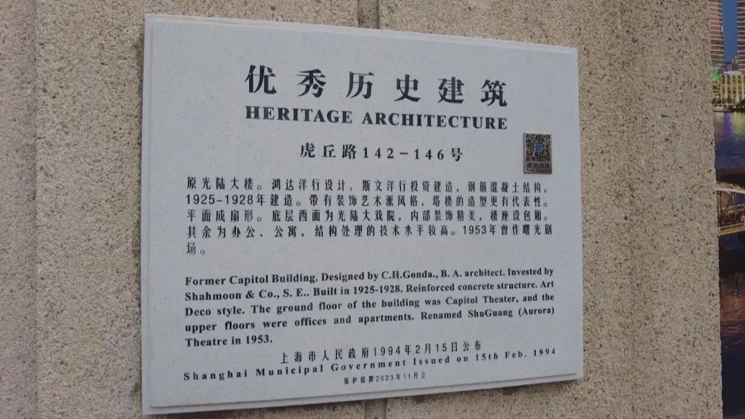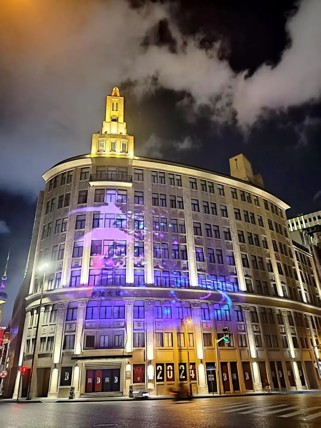 位于虎丘路146号的光陆大楼,是由匈牙利建筑师鸿达设计,1928年落成,是上海首家将影院嵌入商厦的先锋之作,也是装饰艺术风格的经典代表。当时,大楼里面的光陆大戏院占据大楼底部两层,其无柱设计、空调系统、防火隔音技术在当时堪称超前。鲁迅先生晚年常携带家人来此观影,尤其喜爱《米老鼠》动画,留下了温馨的家庭记忆。1930年代,派拉蒙、福克斯等好莱坞五大公司的中国公司总部入驻,使其成为外文电影的发源地。