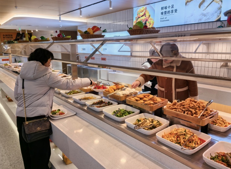 除了菜品,食堂在服务细节上也下足功夫。不少附近居民也常来用餐:“餐盘消毒到位,还有热毛巾擦手,吃完送杯酸奶,我们小区好多人都来这里吃过的。”一位阿姨则点赞免费热豆浆和特色凉菜:“喝着暖和,我们吃得也安心。”