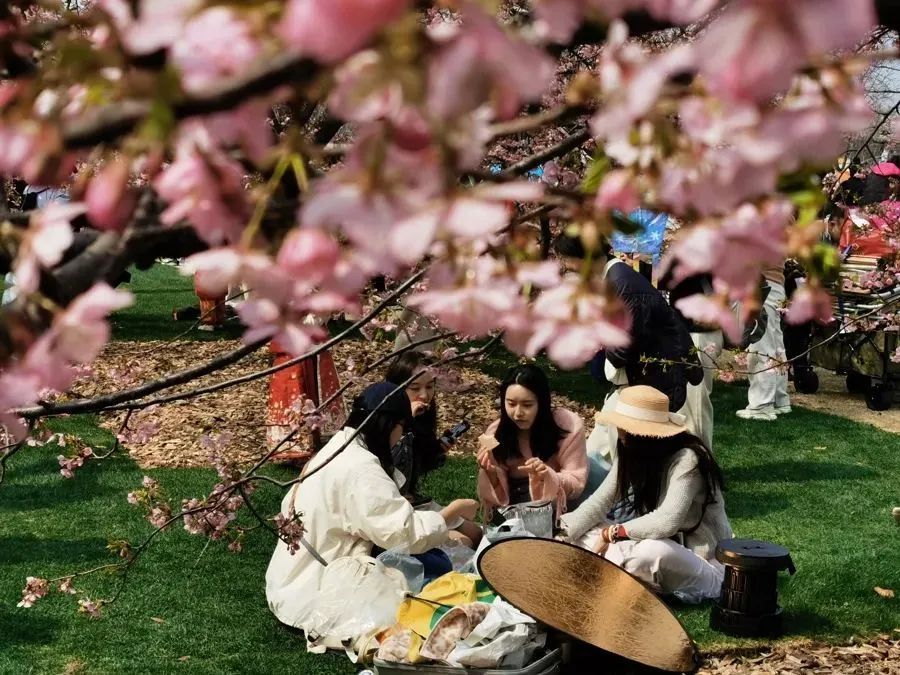樱花树下长满了人