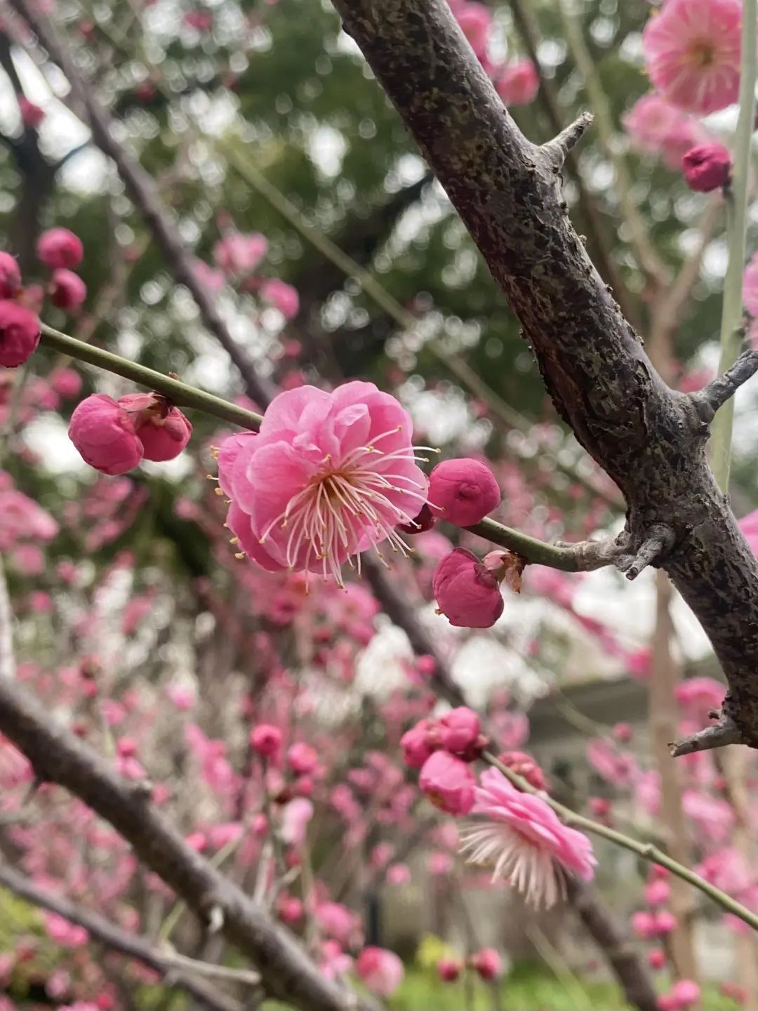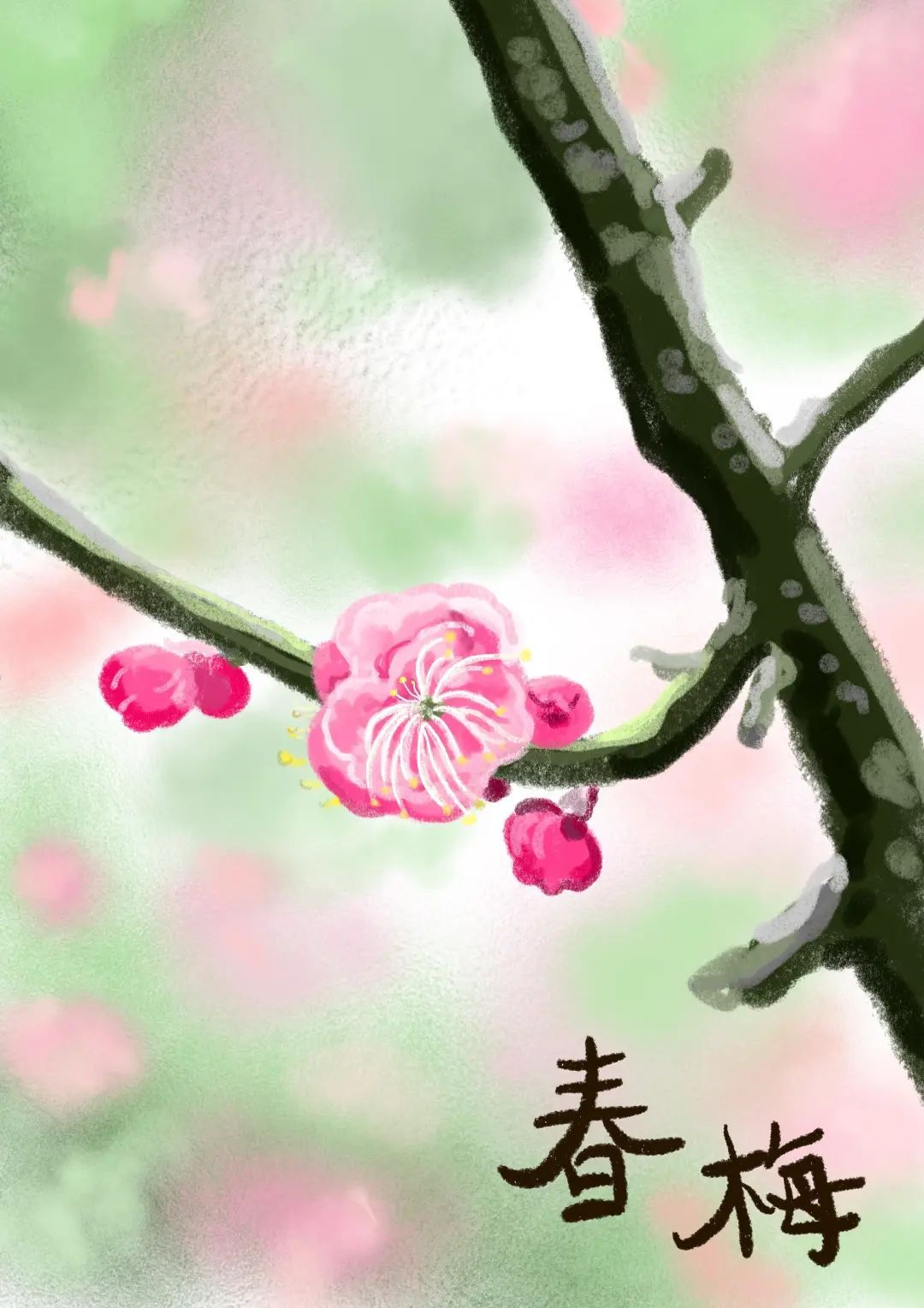 老城厢里的红梅开得正是时候,含苞待放迎风飘扬成为潮湿空气里无法忽略的一抹粉红色。
