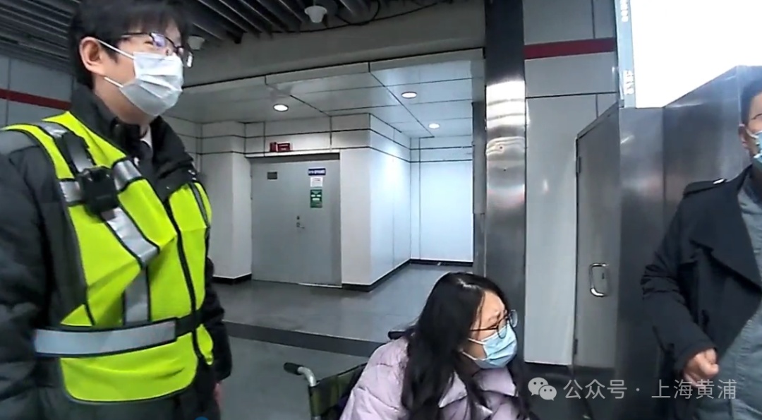 地铁站值班站长徐俊、刘辰伟以及站务员陈彧扬在接到消息后,第一时间携带医药箱赶到现场。他们初步了解了乘客的情况后,立即为其送上了一杯温热的开水,以缓解其身体不适。同时,站务员还贴心地脱下自己的羽绒服披在乘客身上,为其保暖。随后,工作人员使用轮椅车将乘客送至站长室休息。