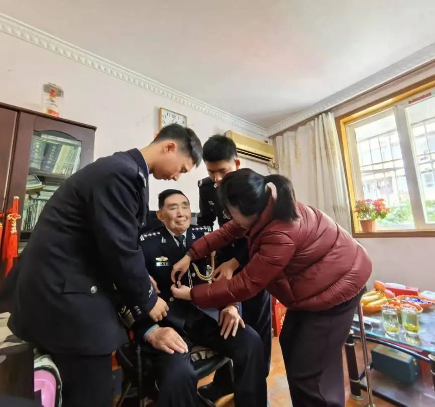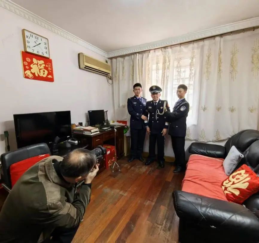 宝山监狱“小青团”志愿服务队得知了杨老这个愿望。近日,志愿者服务队两名00后志愿服务队员与监狱老干部科同志一同前往杨老家中,为他举办了一场特殊的“归队仪式”。在这场跨越世纪的对话中,杨老对上海监狱系统深厚的感情也感染了在场“小青团”志愿服务队的两位成员。